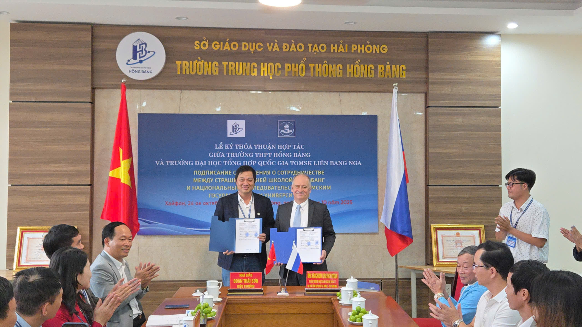 Chiều ngày 24 tháng 10 năm 2025, được sự cho phép của Sở Giáo dục và Đào tạo, trường THPT Hồng Bàng đã tổ chức Lễ ký thoả thuận hợp tác giữa Trường THPT Hồng Bàng với Trường Đại học Quốc gia Tomsk – Liên bang Nga.